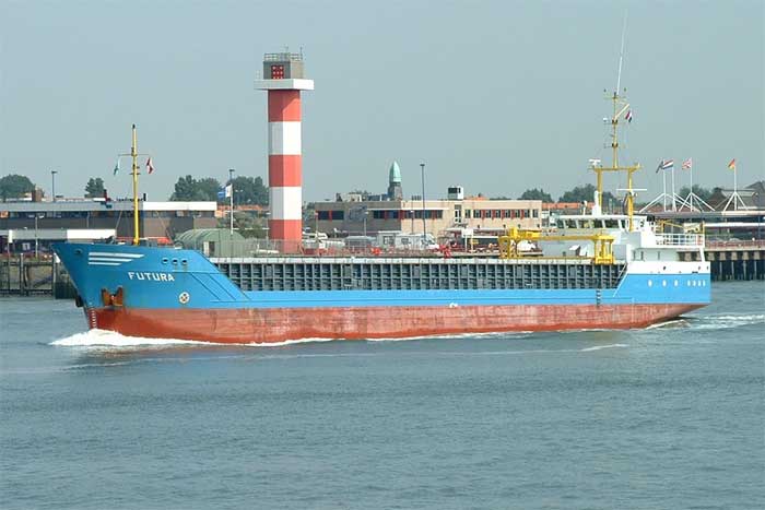 Type: Bulker. - Builder: . - Year of build: 1991. - Ex.: STROOMBANK '05, FUTURA, SEA MAAS, FUTURA - Callsign: P3DR. - Dimension: 2.500 DW, 81,70 x 11,10 x 4,45. IMO 9133537 - Port of registry: St. John's. Photo of Futura taken by Frank Sanders